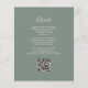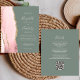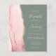 A borda esquerda deste elegante convite de casamento moderno apresenta uma cor-de-água rosa pincelada com borda falsa de ouro. O texto personalizável combina letra pálida, letra copperplate e itálico em um fundo verde de sábio profundo. O verso fornece espaço para detalhes do casamento em um plano de fundo verde de sábio sólido, junto com um código QR que os convidados podem digitalizar para visitar seu site e RSVP, o que economiza o custo de impressão e envio de RSVP separados