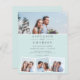 Este convite para casamento de orçamento apresenta uma foto de cabeçalho com uma colagem de 3 fotos na parte inferior com uma borda branca ao seu redor. Seus detalhes de casamento são mostrados em uma tipografia elegante minimalista colocada contra um fundo azul pastel chic.