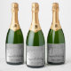 Rótulo da garrafa de champanhe de enrolador de prata. Personalize-o com os detalhes do evento.