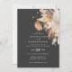Cartão de convite para o casamento de na moda de grama preto da boêmia moderna. Lindas aquarelas florais impressas à mão e texto de script. Moderno em design de tendência.