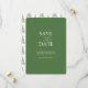 Anuncie a sua noivado com este simples casamento de feriado não fotográfico, salve o cartão do convite. Ele apresenta uma mistura de tipografia clássica e de script em branco sobre um fundo verde sólido. A placa reverte para um padrão de árvore botânica de cor d'água. Use os campos de modelo para personalizar com seu nome e data de casamento. Até personalize as cores para se adequar ao seu tema de casamento. Escolha entre uma variedade de estoques de cartões de qualidade. O meu favorito para isto é o martelo pérola. Um design mínimo para casamentos e anúncios noivados durante os feriados de Natal. Para ver a suíte de papelaria de casamento correspondente com tendências de casamento visite www.zazzle.com/dotellabelle
