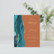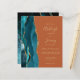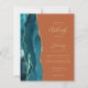 A borda esquerda deste elegante convite de casamento moderno apresenta uma coloração aquosa lacrimogênea aparada com uma falsa brilha de ouro. O texto personalizável combina manuscrito dourado, fontes em copperplate e itálico em um fundo laranja queimado. O verso apresenta um design de chaleira e de agata dourada.