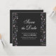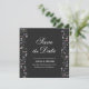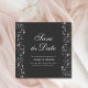 Casamento Salve o Cartão de Datas com design de Flor Roxo em um fundo de carvão. Itens correspondentes disponíveis! Procure "WF1" na loja.