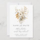 Elegante cartão de salvar a data de casamento com flores silvestres pintadas em marfim e marrom queimado para qualquer estação, complementado por um contraste adorável de tipo de letra moderna e uma clássica letra serifada. Elegância moderna boho. Flores silvestres simples no verso.