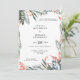 Convite para casamento de folhagem de folha rosa e tropical. Parte de uma fantástica suíte de casamento elegante. Coleção tropical verde moderno, azul e coral.