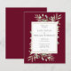 Apresentando delicadas folhas verde-aquáticas em fundo de burgundy, este convite de casamento botânico pode ser personalizado com sua informação especial sobre o dia do casamento. Projetado por Thisnotme©