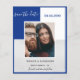 Um casamento moderno Salve o cartão com fotos de Data. Blocos de cor reais, brancos e falsos metálicos prateados. Personalize e adicione sua foto e detalhes do casamento.