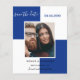 Um casamento moderno Salve o cartão com fotos de Data. Blocos reais de cor azul e branca. Personalize e adicione sua foto e detalhes do casamento.