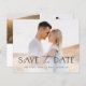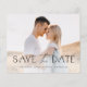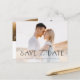 Um casamento de fotos de orçamento elegante Salve a data com fotos de cheio, tipo moderno e layout simples na frente. A parte traseira tem 2 fotos adicionais e mais detalhes. Clique no botão editar para personalizar este design.