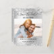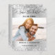Um casamento moderno Salve o cartão com fotos de Data. Um fundo com aparência de prata falsa decorado com brilho falso, faíscas. Personalize e adicione sua foto, detalhes do casamento e seu próprio código qr ao seu site de casamento. Este cartão está disponível em nossa loja sem o código QR na parte traseira.