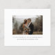 Um casamento com fotos elegante no orçamento 2 salve o cartão de data com detalhes elegantes de caligrafia, uma foto vertical e um texto clássico na frente. O verso tem um site horizontal de fotos e casamentos para os convidados obterem mais informações. Clique no botão editar para personalizar este design.