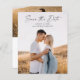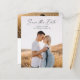 Casamento de Foto de Script Moderno de Orçamento Salve o cartão Data. O verso contém uma segunda foto com detalhes adicionais. Clique no botão editar para personalizar este design com suas fotos e detalhes do casamento.