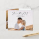 Casamento de Foto do Script de Orçamento Salve o cartão Data. O verso contém uma segunda foto com detalhes adicionais. Clique no botão editar para personalizar este design com suas fotos e detalhes do casamento.