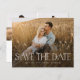 Um casamento com tipografia elegante do orçamento Salve a data com fotos de sangria de cheio, tipo moderno e layout simples na frente. A parte traseira tem 2 fotos adicionais e mais detalhes. Clique no botão editar para personalizar este design.