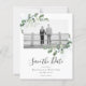 Diga aos seus amigos e familiares que você marcou uma data para o seu casamento com esta linda aquarela eucalipto Salve o cartão de Data. Estas cartas fazem parte de uma suíte de casamento coordenada que está disponível em nossa loja. A fotografia do modelo é para fins ilustrativos e pode ser mudada para uma de vocês.
