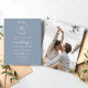 Floral Wreath Dusty Blue Monograma Foto Convite para Casamento