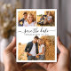 Casamento De Colagem De 3 Fotos Com Script De Caligrafia Minimalista Elegante De Orçamento Salve As Cartões De Data Em Preto E Branco. Esta delicada design é feita precisamente para casamentos contemporâneos, exuberando um encantador apelo romântico. Destacando uma graciosa colagem em grade de 3 fotos e uma caligrafia química em uma letra de cauda de swash com letra manuscrita, essas cartas simbolizam a elegância moderna. Personalize-os sem esforço com seus preciosos detalhes e fotos do seu casamento, oferecendo um barato ainda refinado para anunciar seu dia especial.