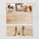 Orçamento, design de convite para casamento rústico e moderno mostra uma grande foto vertical na frente acima de seus nomes em itálico serifônico minústico com uma elegante e sua data de casamento contra uma imagem de slats de madeira de fazenda bege. Cartões revertem para três fotos quadradas no topo, típica tipografia de casamento no meio, e uma foto horizontal no fundo na mesma madeira. Casamento de madeira minimalista com colagem de 5 fotos. Para nossas fotos de modelo, nós escolhemos um esquema neutro de cor da terra de azul pálido, branco e bege, mas esse design versátil foi feito tendo em mente a personalização e certamente ficará bem com qualquer combinação de cores. Clique em "Personalizar este modelo" para alterar o texto e carregar as suas próprias fotos. Se quiser editar fontes, posicionamento ou cores, basta rolar para "Clique para personalizar mais" e usar a ferramenta design do Zazzle. Como parte da seleção orçamentária no Zazzle, esta folha não é um tamanho de convite padrão ou qualidade de papel. Se quiser que este design num cartão de convite o encontre na nossa loja ou utilize o Zazzle Make Machine para o transferir para o produto da sua escolha. Sinta-se à vontade para me contactar através do botão abaixo para quaisquer questões relacionadas com o design. Visite nossa loja para mais convites!