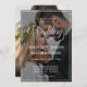 Celebre o seu dia especial com o nosso elegante "Casamento de Fotos" Convite Duplo Lado! Este convite maravilhosamente projetado permite que você mostre duas fotos queridas — uma de cada lado — criando um toque personalizado que captura sua história de amor. O layout do na moda contém texto personalizável, permitindo que você inclua seus nomes, data de casamento, detalhes do local e uma mensagem sincera para seus convidados. Uma camada preta de fotos em cima da sua foto torna o texto mais visível e legível e macio e elegante fazer. Um roteiro de na moda com espirais decorativas junto com os nomes dos casais é a peça central. No verso você pode adicionar a mesma foto ou outra. Texto adicional opcional, como o seu site de casamento em cima de um gradiente escuro - ou apagar. Impresso em um estoque de cartão de qualidade superior, este convite expele sofisticação com detalhes nítidos e cores vibrantes. Quer você prefira um tema clássico, moderno ou rústico, nosso modelo fácil de editar garante que seu design corresponde perfeitamente à estética do casamento. Faça uma impressão duradoura em sua família e amigos com essa manutenção única e memorável. Ideal para cerimônias formais, casamentos de destino, ou encontros íntimos, este convite a fotos de lado duplo é uma forma eterno de convidar seus entes queridos a compartilhar sua celebração alegre. Peça hoje e crie uma primeira impressão inesquecível!