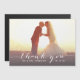 Cartões de agradecimentos de fotos de casamento com guião de escrita manual. Mande a sua obrigado de casamento sua mensagem como recém-casados para seus amigos e família usando esta maravilhosa e simples obrigado que você cartão com fotos de casamento com as palavras "obrigado você" escrito em uma cobertura de texto de escrita manual branca. Casamento Obrigado Cartões com Sua Foto. Design por Elke Clarke©. Substitua a foto da amostra pela sua.
