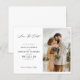 Simples casamento do BARATO BUDGET com o script de caligrafia simples, elegante e minimalista moderno, salve o modelo de cartão de data com a sua imagem personalizada do noivado.
