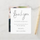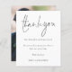 Um Simples Casamento De Fotos De Script Obrigado. Um alternativo MENOR de 4,5" x 5,6", compatível com o orçamento. Disponível em um STOCK de PLACA SEMI GLOSS 110 lb ou um STOCK de PAPEL THINNER SATIN FINISH 80 lb. Os envelopes são um extra opcional. . Um design de tipografia minimalista com um script de estilo de letra de na moda definido para Obrigado. No verso, substitua a imagem por sua favorita do dia como guardiã para seus convidados. Personalize facilmente o resto do texto com sua mensagem e nomes.