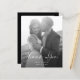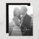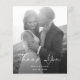 Este é um cartões de agradecimentos de casamento de fotos preto e branco, moderno e elegante, amigável em orçamento, usando uma letra manuscrita, impressa em uma folha de papel. Altere facilmente as cores, o texto e a foto. O verso inclui outra foto e um obrigado que você pode personalizar. Entre em contato com o designer para obter informações relacionadas a este design.