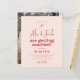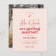 Um convite de casamento divertido e engraçado. A frente deste cartão de crédito apresenta um fundo cor-de-rosa-creme com tipografia vermelha-cereja. Os nomes dos casais são escritos em uma letra moderna de escrita manual, com letra de escrita, com "estão se casando" em groovy retro typografia. Acima dos nomes, há uma ilustração feita à mão. Abaixo, os detalhes do evento são impressos em simples capitais sans-serif - um design simples mas na moda para um casamento casual. As cartas invertem para uma foto personalizada. Os nomes dos casais e a data do grande dia também estão na parte de trás do cartão. Como parte da seleção orçamentária no Zazzle, esta folha não é um tamanho de convite padrão ou qualidade de papel. Se quiser que este design num cartão de convite o encontre na coleção ou utilize o Zazzle Make Machine para o transferir para o produto da sua escolha. Veja a coleção ligada nesta página para itens correspondentes ou visite a nossa loja para mais convites para o casamento!