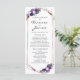 Programa de casamento para a coleção Purple Floral. Dia do programa de casamento para convidados, família e amigos. Para personalização mais avançada, clique no botão "Personalizar" acima. Itens correspondentes disponíveis