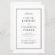 Convite clássico minimalista de casamento que apresenta duas fronteiras quadradas usando a tipografia serif e o monograma no verso.