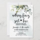 Design de casamento de fuga com vegetação em aquarela, fundo rosa e letras em caligrafia moderna. O gráfico diz "nada de luxo, apenas amor" com um coração no centro. Para acessar ferramentas avançadas de edição, vá para “Personalizar” e clique no link "clique para personalizar ainda mais".