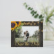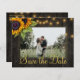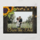 Girassóis amarelos e cordas de luzes cintilantes em madeira elegante marrom-escura foto personalizada salvando a data barato BUDGET postcard de casamento. +++++++ Fácil de personalizar com seus nomes e texto! ++++++++ Adequado para o verão floral ou outono / quintais de jardim ou casamentos temáticos de fazendas. ++++++++++++++++++++++++++, LEIA ISTO ANTES DE COMPRAR! Este é um cartão de casamento de barato orçamentário impresso em uma folha de papel (cada folha tem um cartão). +++ Para obter a melhor qualidade do preço do rascunho, o nosso conselho é escolher o tipo de papel Semi-Gloss (é suficientemente grosso para ser usado para papelaria) +++ Se você precisar de envelopes, escolha a OPÇÃO ENVELOPE. ++ Verifique duas vezes todas as informações e a ortografia do seu texto porque você receberá exatamente o que você vê - ninguém mais verificará nada antes de imprimir. +++ Esta placa foi projetada para o tamanho de 4,5" x 5,6". Caso você escolha outro tamanho do cartão e o texto saia da página, tudo precisa ser corrigido antes de adicionar o produto ao carrinho. Peça ajuda ao Serviço de Design ao Vivo.