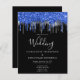 Convide seus amigos e família para comemorar seu dia especial com esses cartões de convite de casamento, preto, prata e azul. Personalize com seus nomes e todas as suas informações de casamento. Esta coleção temática de casamento e polícias da polícia será favorita entre todos os policiais, esposas policiais e polícias. COPYRIGHT © 2020 Judy Burrows, Black Dog Art - Todos Os Direitos Reservados. Casamento de Glitter Azul de Prata Elegante de Orçamento