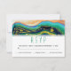 Uma fatia verde, azul e pêssego com veias de folha de ouro, o moderno cartão de resposta RSVP de casamento geode verão. Um design de casamento moderno e elegante com uma fatia de agata e uma banda branca com a sua redação.