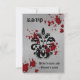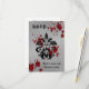 Cartões RSVP para um tema de casamento Halloween, Vampiro ou Gótico. Estas apresentam um elegante motif vitoriano úmido a preto com espinhos de sangue sobre uma cinza de cor doce clara. Adicione 2 nomes à frente. O texto no verso pode ser alterado ou deixado como está.