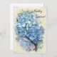 Anuncie seu casamento ou elopemento recente com o elegante Casamento de Flor Azul Hydrangea/Anúncio de Elopement. Este anúncio de casamento floral personalizado clássico apresenta uma fotografia botânica pintada digitalmente de uma flor azul de hydrangea com um fundo de cor branca e creme esbranquiçado.