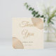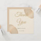 Um cartões de agradecimentos de casamento minimalista, projetado para complementar o convite correspondente. Ele apresenta um fundo de marfim macio, acentuado com duas formas de seixo semitransparentes em bege quente e tons de champanhe colocados nos cantos. O design sutil adiciona um toque de sofisticação enquanto deixa o texto editável para sua mensagem de gratidão.