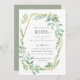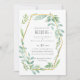Bonito cor d'água verde, folhas de sábio com um quadro geométrico dourado neste item de casamento moderno. Parte de uma coleção maior de casamento orçamentária que inclui convites, salvar a data, rsvp com opções de menu, etiquetas para favores e presentes e envelopes, convites para chás de panela e muito mais.