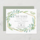 Bonito cor d'água verde, folhas de sábio com um quadro geométrico dourado neste item de casamento moderno. Parte de uma coleção maior de casamento orçamentária que inclui convites, salvar a data, rsvp com opções de menu, etiquetas para favores e presentes e envelopes, convites para chás de panela e muito mais.
