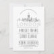 Um convite de casamento único para um casamento acontecendo na bela cidade de Londres. Este convite apresenta uma ilustração estilizada do horizonte único da cidade com seu nome embaixo. Esta é seguida pelas informações do dia do casamento em um estilo aberto igual. No verso do convite está uma cor de cinza profunda para complementar a aparência e o sentimento. Todos os elementos individuais do cartão de convite estão desbloqueados, portanto, sintam-se livres para alterar ou adicionar os detalhes necessários usando a função de personalização. Você pode adicionar uma foto ao verso e adicionar um filtro preto e branco a ele. Estão disponíveis placas RSVP, bandas de barriga, sacos de tote e muito mais. Divirta-se sendo criativo e fazer seu!