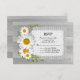 Lindo tema rústico, o design apresenta margaridas brancas e burlap sobre madeira de galinha rústica. Totalmente personalizável, clique no botão Personalizar para alterar a cor, o tamanho e o estilo da fonte. Você também pode excluir, reorganizar ou adicionar mais texto para atender às suas necessidades.