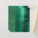 A borda esquerda deste elegante convite de casamento moderno apresenta uma borda brilhante verde esmeralda. O texto personalizável combina manuscrito branco e fontes sans serif em um fundo verde de metal escovado. O verso apresenta um brilho verde correspondente e design de metal escovado.