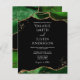 Emerald Green Agate Stone Variegou Convites De Casamento. Estrias de pedra de ouro falsas. A fonte do script é realçada com a fonte de nome de serif de leitura fácil. Fácil de ajustar para as suas necessidades de casamento.