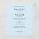 Os detalhes do seu casamento são apresentados elegantemente em cinzas, com um toque de caligrafia neste clássico convite de casamento azul pálido. A elegante letra de caligrafia de script é uma fonte em destaque para a "recepção a seguir" na parte inferior. Uma escolha chique para comemoração íntima e romântica, perfeita para microcasamento ou celebração elegante o ano todo. Observe que os envelopes não estão incluídos