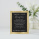 Elemento elegante e econômico ou anúncio de casamento menor e convite de festas de recepção de casamento ou celebração. A frente apresenta um fundo falso de ouro brilhante, "Felizmente Sempre Depois da Festa" numa mistura de simples tipografia e uma escrita elegante com baloiços, e os vossos nomes numa escrita semelhante a uma assinatura.