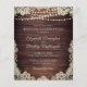 Convites russos para comemoração de casamento ou recepção impressos em papel leve, ideais para orçamentos conservadores e entrega aos hóspedes. Linda madeira sertaneja escura com luzes de cordas e realçada com rendas em um creme de marfim ou cor bege e tipografia elegante de roteiro. Todo o texto é editável para mudar o texto para o ajustado das suas necessidades. Entre em contato com o designer por meio do Zazzle Chat ou makeitaboutyoustore@gmail.com se você quiser que este design seja modificado, em outro produto ou em itens de coordenação.