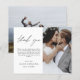 Casamento de Orçamento Obrigado Cartões que têm uma foto na frente e atrás. Os cartões de agradecimento contêm uma tipografia cursiva moderna, escrita com letra de mão, que é elegante, simples e moderna para usar após a celebração do dia do casamento.