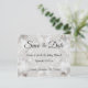 Orçamento Salve a data do anúncio de casamento. Cinza prateada, simples, de ouro branco, design elegante. O script preto pode ser personalizado. Imagem copyright Marg Seregelyi Fotografia.