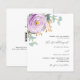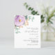 Um fundo branco. Decorados com flores violetas, roxas, flores rosas e folhas verdes de eucalipto de cor aquosa, galhos, verde e borras de ouro falsas. Personalize e adicione seus nomes e detalhes. Voltar: adicione o URL do site de casamento ao código QR para obter detalhes e/ou RSVP. 1 folha = 1 convite impresso de borda a borda.