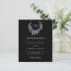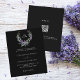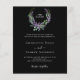 Fundo preto. Uma coroa floral feita de flores lavandas e de eucalipto verde de cor aquosa. Personalize e adicione suas iniciais, nomes e detalhes do monograma. Texto branco. Voltar: adicione o URL do site de casamento ao código QR para obter detalhes e/ou RSVP. 1 folha = 1 convite impresso de borda a borda.
